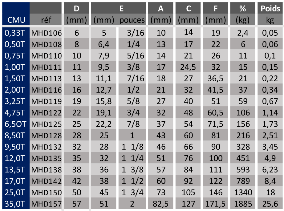 Variante CMU Ø (en mm) Poids Prix HT